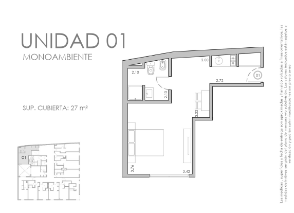 Modernos monoambientes de diseño. Cada uno es privado, para hasta 2 personas. Amoblados y equipados, listos para habitar. Cuentan con baño y cocina privados. Equipados con tv con cable, horno eléctrico con anafe, pava electrica y heladera bajo mesada.